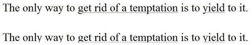/*0,180deg都是可以的*/ background-size: .2em 2px; background-position: 0 1em; } </style> </head> <body> <p>The only way to <a>get rid of a temptation</a> is to <a>yield</a> to it.</p> <p>The only way to <a>get rid of a temptation</a> is to <a>yield</a> to it.</p> </body>